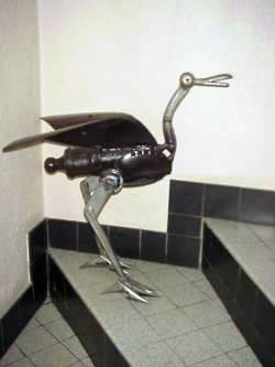 Deux oiseaux créés par assemblage de pièces de récupération. |